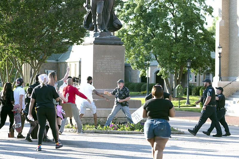 A participant in the 2014 Battle of Selma Re-enactment rides his horse across the battlefield in April 2014.